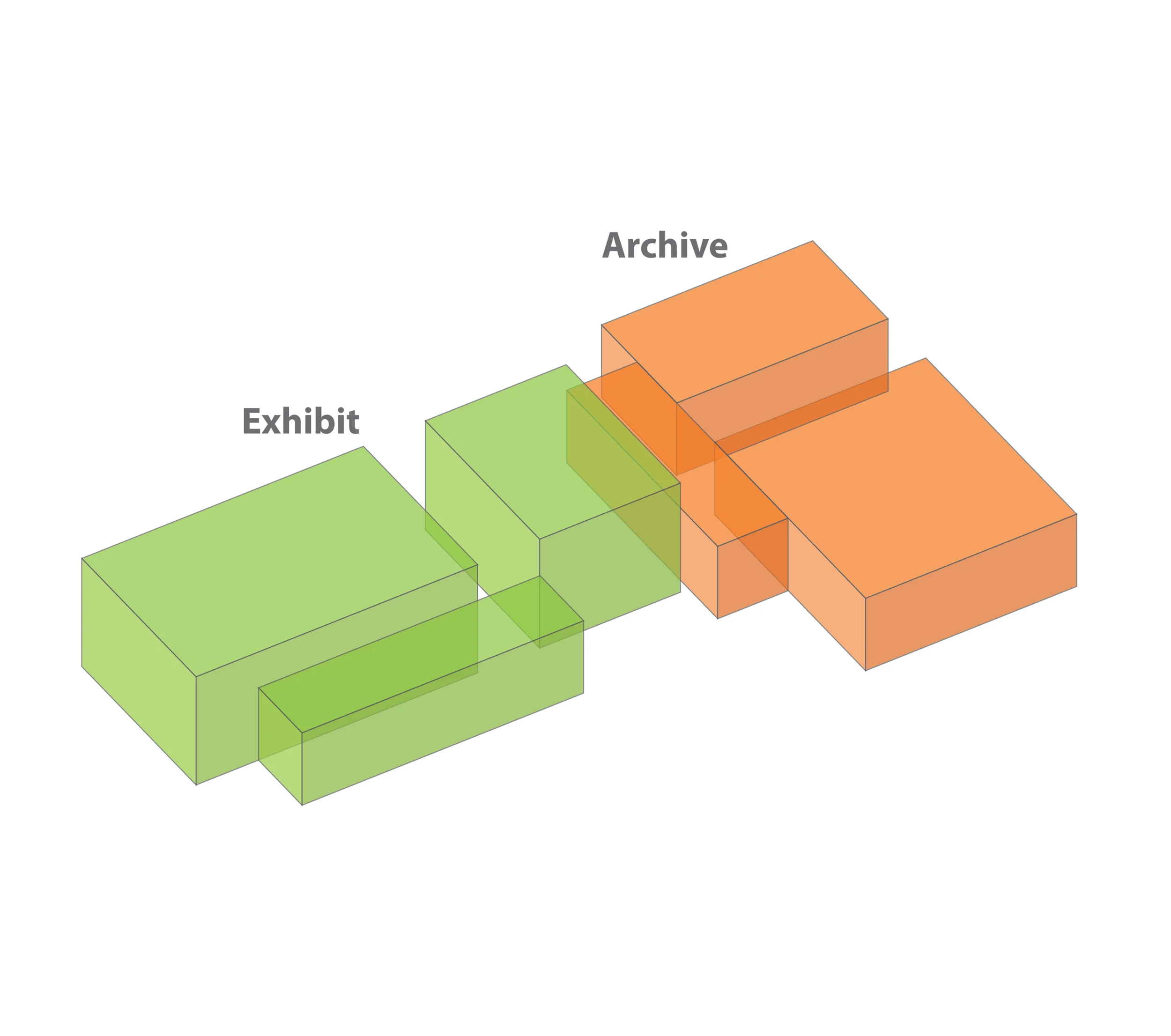 An exhibition space and archive is proposed in Palm Springs, just north of Rudolf Schindler’s Miller House. Both the exhibit and archival program are given an equitable area, as well as related volumetric proportions. The enclosure system responds to the intense climate by limiting southern exposures to heavily protected apertures, with more openness on the unexposed northern elevation.